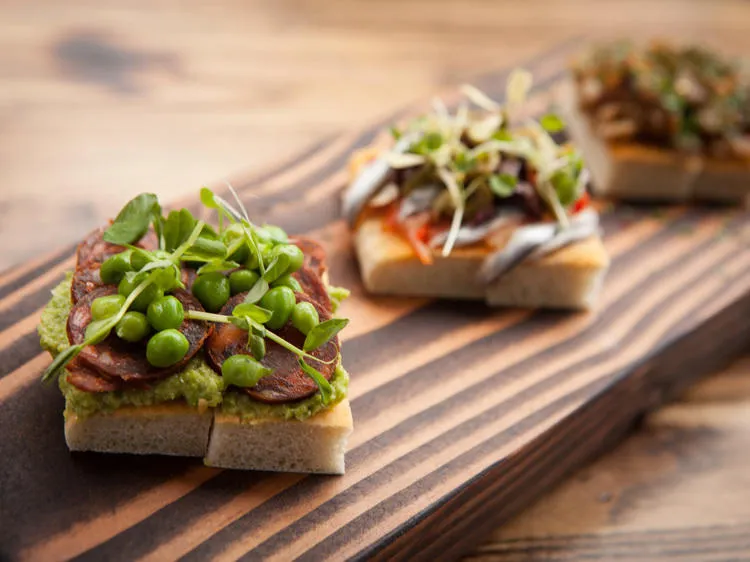 If you go to Spain and walk into any tapas bar, you'll see a huge spread of tiny snacks, waiting for you to pluck them off the counter. When I went to San Sebastian a few years ago, we walked down cobblestone streets, popped into every bar we passed and downed glasses of txakoli, a slightly effervescent wine, and lots of tapas, from delicate anchovies placed over toast to chunks of morcilla, heavy with blood.