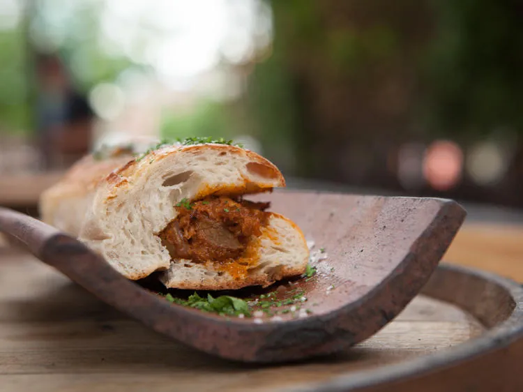 Some of the dishes are from the Tapas dinner menu, including the cocas, the tortilla española and the beautiful, creamy cheesecake. There are also patio-only dishes, including Iberian ham with tomato and a pork belly and manchego bocadillo, which is gloriously fatty and delicious. You can't make a reservation, so tell your friends to meet you there early—this is the patio to be at this summer.