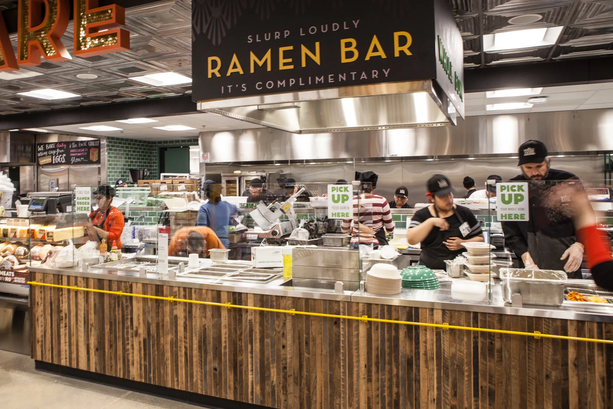 Besides ramen, you can also get food to go from a sandwich bar, a pizza station, which will also be serving foccaccia (a new thing for Whole Foods), a juice and smoothie bar and an outpost of RAW, which is one of our favorite spots to grab lunch in the Chicago French Market.