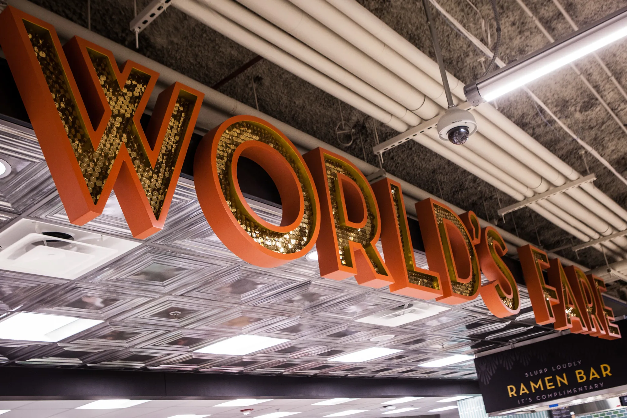 The store's theme is "World's Fare", and there are Art Deco design elements featured all around the store.