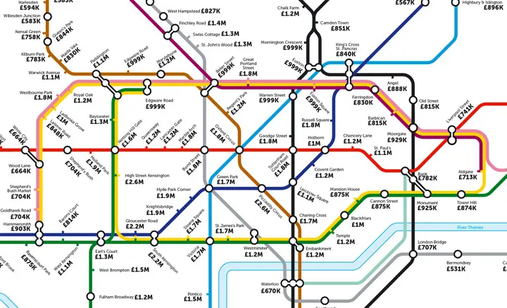 The folks at online estate agent Emoov have put together this handy (and horribly depressing) tube map, which shows the average house price for each of the 280 tube stops on the London Underground.