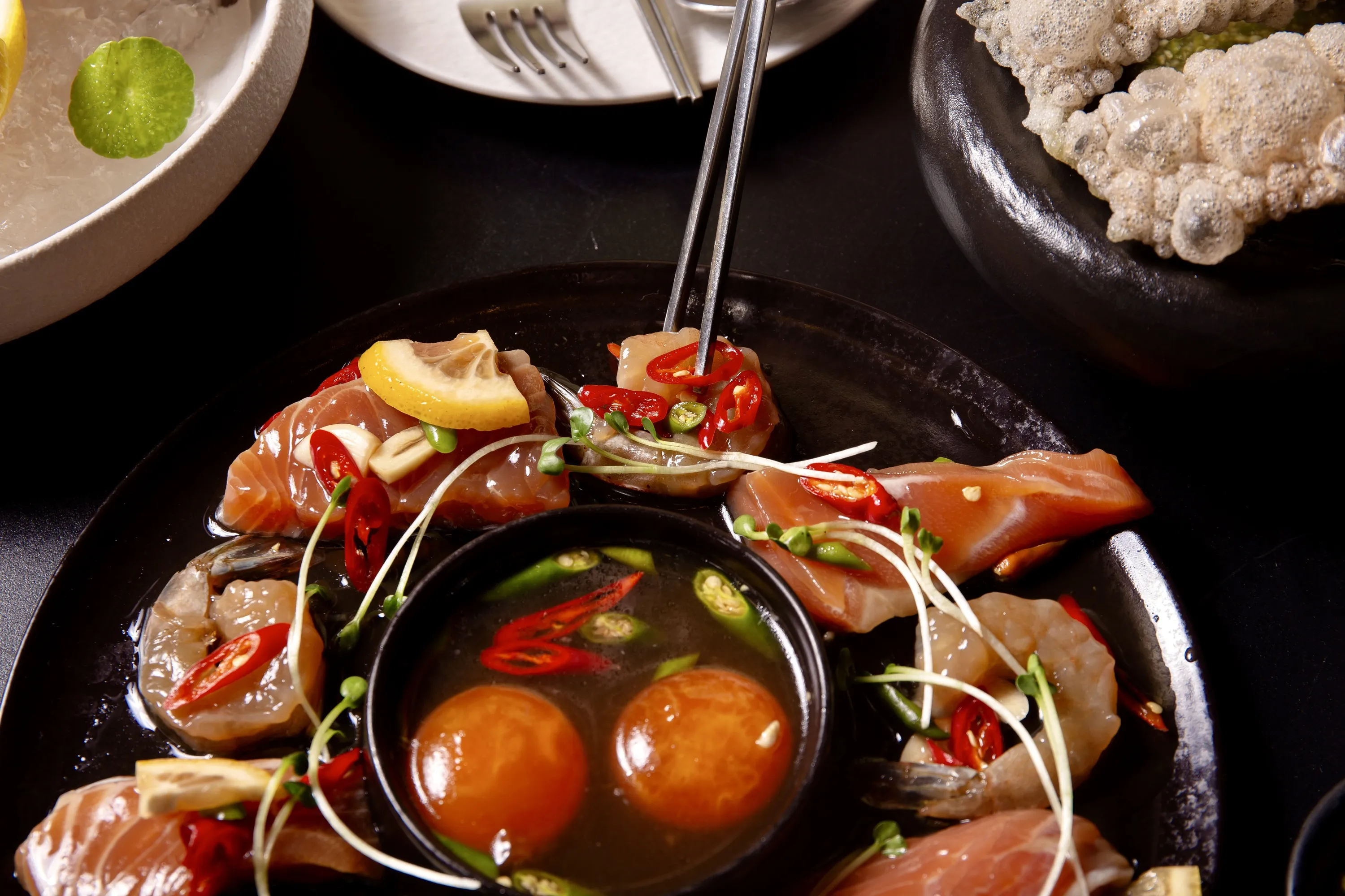 เมนูเซ็ตใหม่ของ ANJU ในครั้งนี้ ประกอบด้วยจานเรียกน้ำย่อยไปจนถึงเมนูอาหารจานใหญ่ที่เหมาะสำหรับแชร์กับเพื่อน เริ่มตั้งแต่เมนูชวนน้ำลายสออย่าง Pickled Salmon & Prawn (590 บาท) Egg Lava with Caviar Trio (350 บาท) และ Tong Young Oyster Kimchi Bloody Mary (290 บาท) แล้วต่อด้วยจานหลักที่ไม่ว่าใครก็ต้องร้องว้าว ทั้ง Fishcake and Beef Tendon Soup (490 บาท) สไตล์ปูซานแท้ๆ และ Miso Snow Fish (1,190 บาท) ซึ่งเสิร์ฟมาในไซซ์ใหญ่สุดเบอร์แบบไม่มีกั๊ก