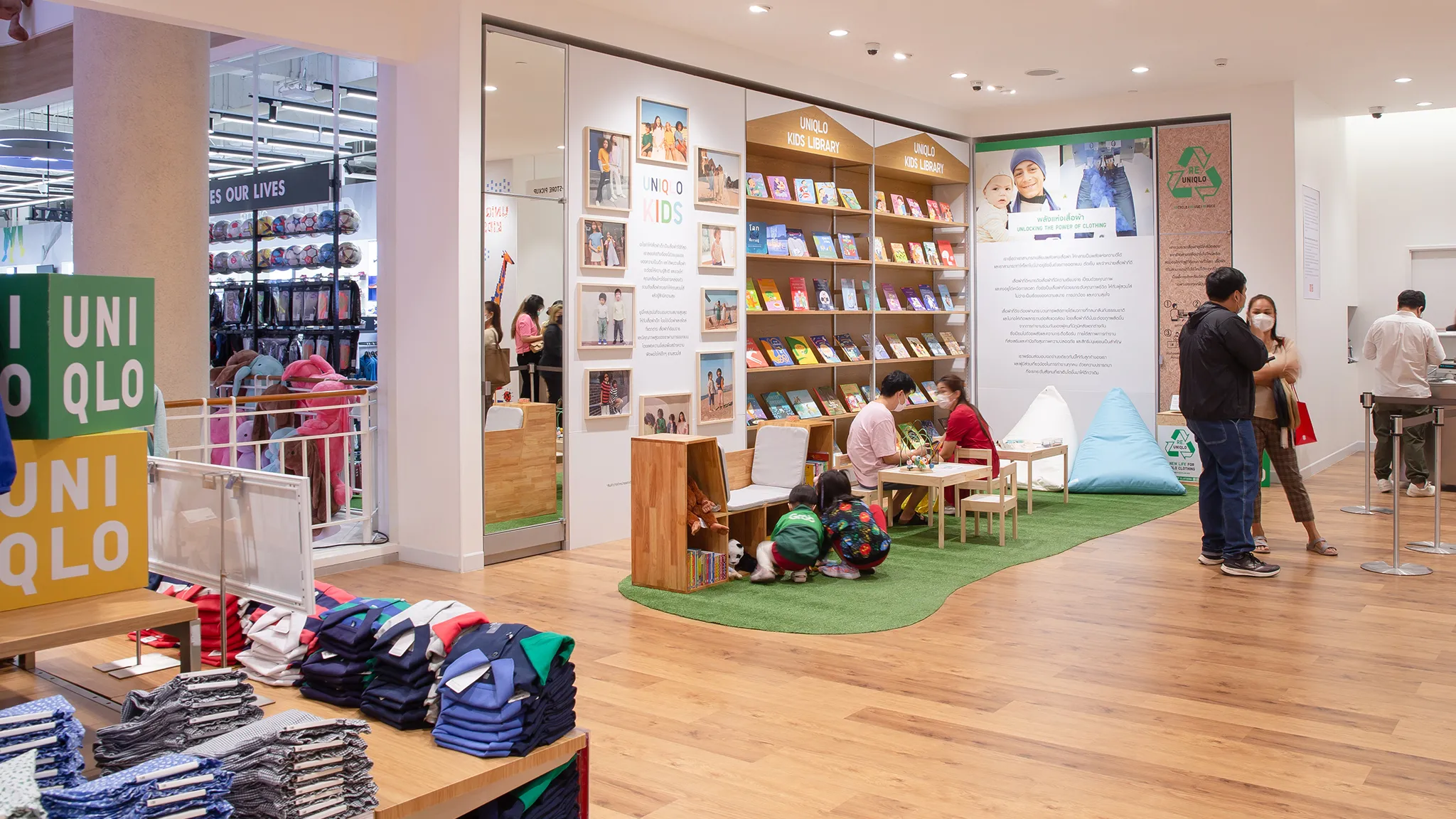 ที่พลาดไม่ได้คือ Uniqlo สาขาใหม่ล่าสุดที่กินพื้นที่เกือบครึ่งชั้น และที่พิเศษที่สุดคือสาขานี้เป็นสาขาแรกที่มีมุมหนังสือสำหรับคุณหนูๆ Uniqlo Library ให้น้องๆ ได้เดินทางเข้าสู่โลกการอ่านและจินตนาการ พร้อมเปิดแรงบันดาลใจในการเลือกเสื้อผ้าไปพร้อมๆ กัน