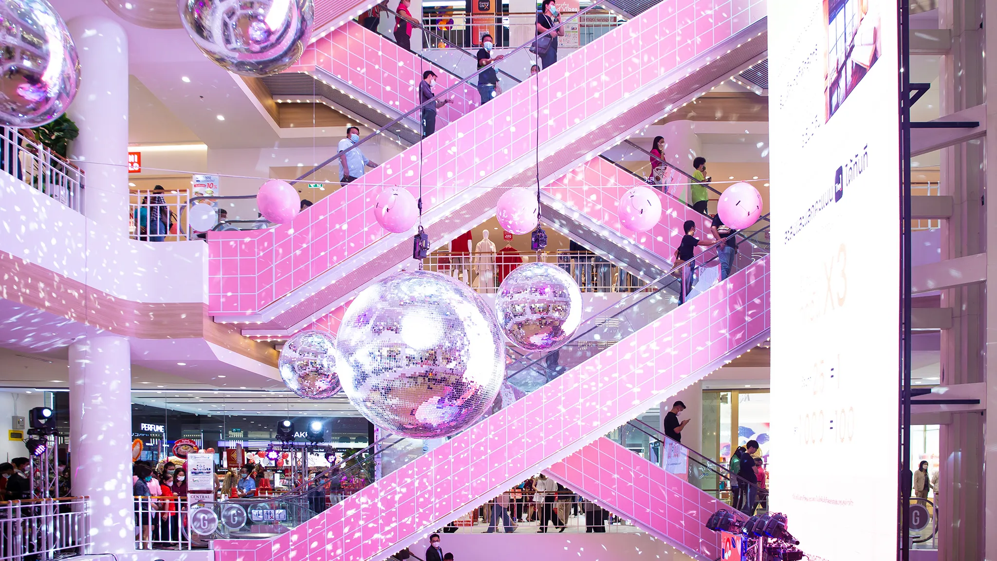 ไม่ว่าจะเป็นเอเทรียมต้อนรับที่โปร่งจนถึงชั้นบนสุด ต้อนรับนักช้อปด้วยแสงธรรมชาติและพื้นที่ที่เตรียมพร้อมรับอีเวนต์มากมายในอนาคต และบันไดเลื่อนสีชมพูสดใสที่จะพาชาวรามอินทราไปยังประสบการณ์ไลฟ์สไตล์สดใหม่ที่อัดแน่นครบทุกชั้น