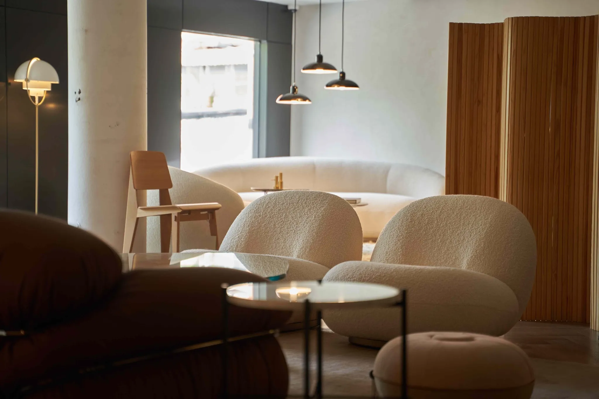 ด้วยแบรนด์เฟอร์นิเจอร์ของร้านที่เลือกมาทั้งแบรนด์ Hay, Gubi, Vitra, String, Tacchini, Treku, และ Varier Paper Collection ทุกแบรนด์มีคาแรคเตอร์และลูกเล่นที่แตกต่างกัน แต่สิ่งที่เหมือนกันคือความเนี๊ยบในรายละเอียด ดังนั้นการออกแบบร้านโฉมใหม่นี้ นอกจากมีการขยายพื้นที่เพิ่มเติมบริเวณชั้น 2 แล้ว ทางร้านยังตั้งใจจะนำเสนอคอนเซ็ปต์นิยามใหม่ของคำว่าลักชัวรี่ ด้วยความคอนทราสต์จากวัสดุตกแต่งร้าน ที่มีการใช้ปูนเปลือยและโครงเหล็กเข้ามาเติมจริตดิบแต่เท่ให้ความนอร์ดิก
