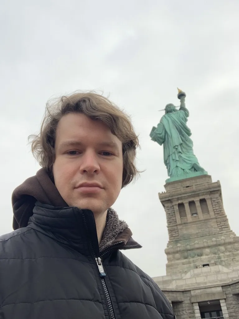 I eavesdropped on the small paid tour next to me and stole a few fun facts: the statue was a rare collaboration between two countries on a piece of art (France made the statue, the U.S. covered the pedestal). She was also the first crowd-funded campaign: since New York’s wealthiest didn’t contribute, afraid she’d inspire workers to unionize, Pulitzer (yes, that one) ran a front-page ad asking Americans to donate, and they did. She pronounced Carnegie like “Carneggy,” like he was someone who compliments with insults, which made me smile. As we neared the statue, the tour guide took her small group to line up by the door to get out first.
