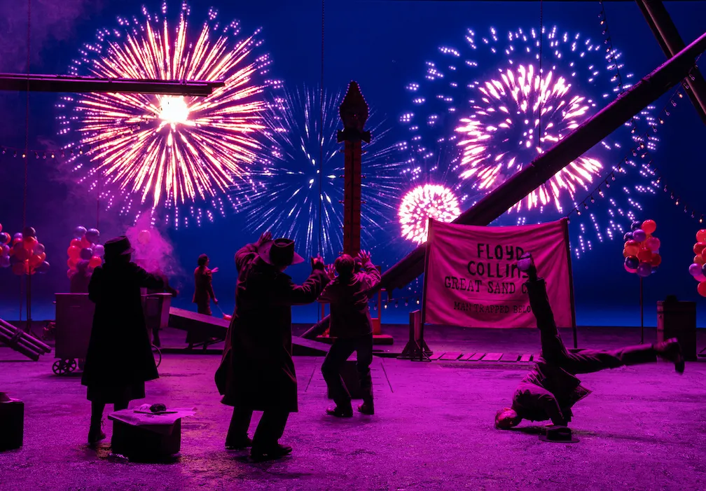 More than a century has gone by since an unfortunate Kentucky spelunker named Floyd Collins, in search of money and glory, made national headlines by getting trapped in a subterranean cavern. “I just know it’s my lucky day!” sings Floyd—played by a hale and hearty Jeremy Jordan—irresistibly tempting the gods of dramatic irony as he grapples through the dark at the start of the musical bearing his name. “There’s a kind of awe / You can’t catch in a photograph,” he continues. “S’like a giant jaw / It’s calling me.” But when he heeds that call, the jaw snaps shut: A passageway collapses and he’s pinned there by debris, all but sealed in a cave of wonders where no amount of wishing can save him. From this point on, there is nowhere for Floyd Collins, or Floyd Collins, to go.