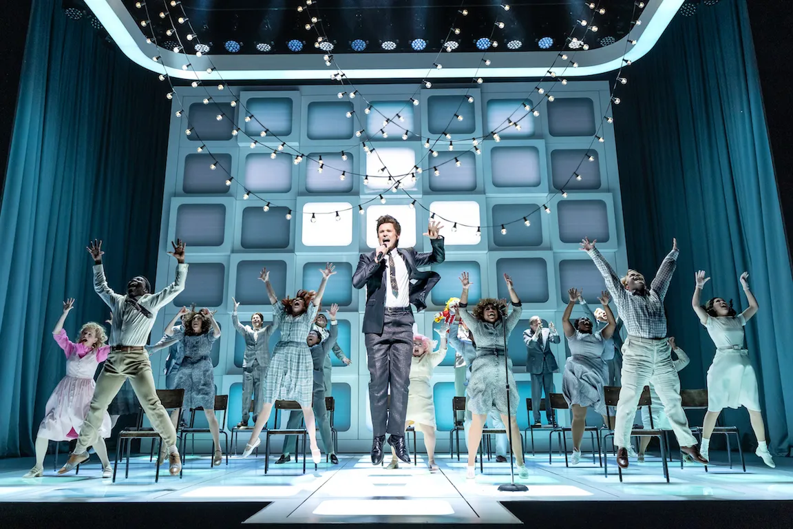 Tammy Faye’s book is by the prolific British playwright James Graham, who specializes in modern-history plays like Ink. Beyond the Bakkers’ particular trials, the musical tracks a larger phenomenon: the story of how religious fundamentalists—notably the Bakkers’ nemesis, and the musical’s villain, Jerry Falwell (a suitably clammy Michael Cerveris)—laid the groundwork for political upheaval that is still being felt today. (“Together, we…can return this country to a time of greatness again,” Falwell tells California Governor Ronald Reagan. Wink wink nudge nudge know what I mean?) Rival preachers rise and fall on the fickle pedestals of Bunny Christie’s gray, boxy set; all of them are eventually enmeshed in scandals not unlike the ones that brought down the Bakkers and their PTL Television Network.