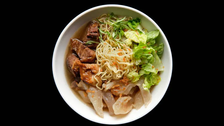 Wonton noodles have undergone quite the transformation under the hands of Benson Ng and Brandon Teo. As an ode to their favourite dish, the pair of childhood friends adapted a traditional recipe – from Seng’s Wanton Noodles at Dunman Food Centre back in 1968 – to create an elevated version. At Seng’s Noodle Bar, handmade egg noodles come served alongside quality fix-ins: torched char siew, smoky and tender; roast pork; meaty parcels of wonton; and upbeat hip hop tunes.