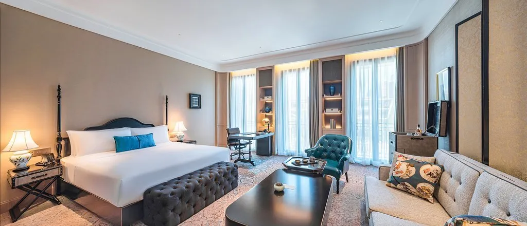 My king room came with a full study area, a three-seater sofa and large French windows opening into the courtyard. Design-wise, the rooms land beautifully between modern luxury and subtle heritage touches. You get a seven-choice pillow menu, a sleep aromatherapy kit and even a bar cart stocked with thoughtful details.