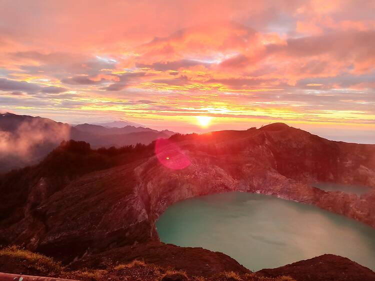 Indonesia is a destination known for its natural wonders: from exceptional surf beaches to dense, tropical rainforests. And if you’re a nature lover planning a visit to this beautiful island nation, we’ve got an otherworldly spot to add to your hit list. High in the misty highlands of Flores, Kelimutu National Park is a pocket of surreal Indonesian magic. This unique tropical park is best known for its trio of crater lakes that shift colours like mood rings – from milky turquoise to inky black to rust-red. Sunrise here isn’t just pretty; it’s borderline spiritual, with clouds parting to reveal a landscape that looks like it’s been plucked from another planet.