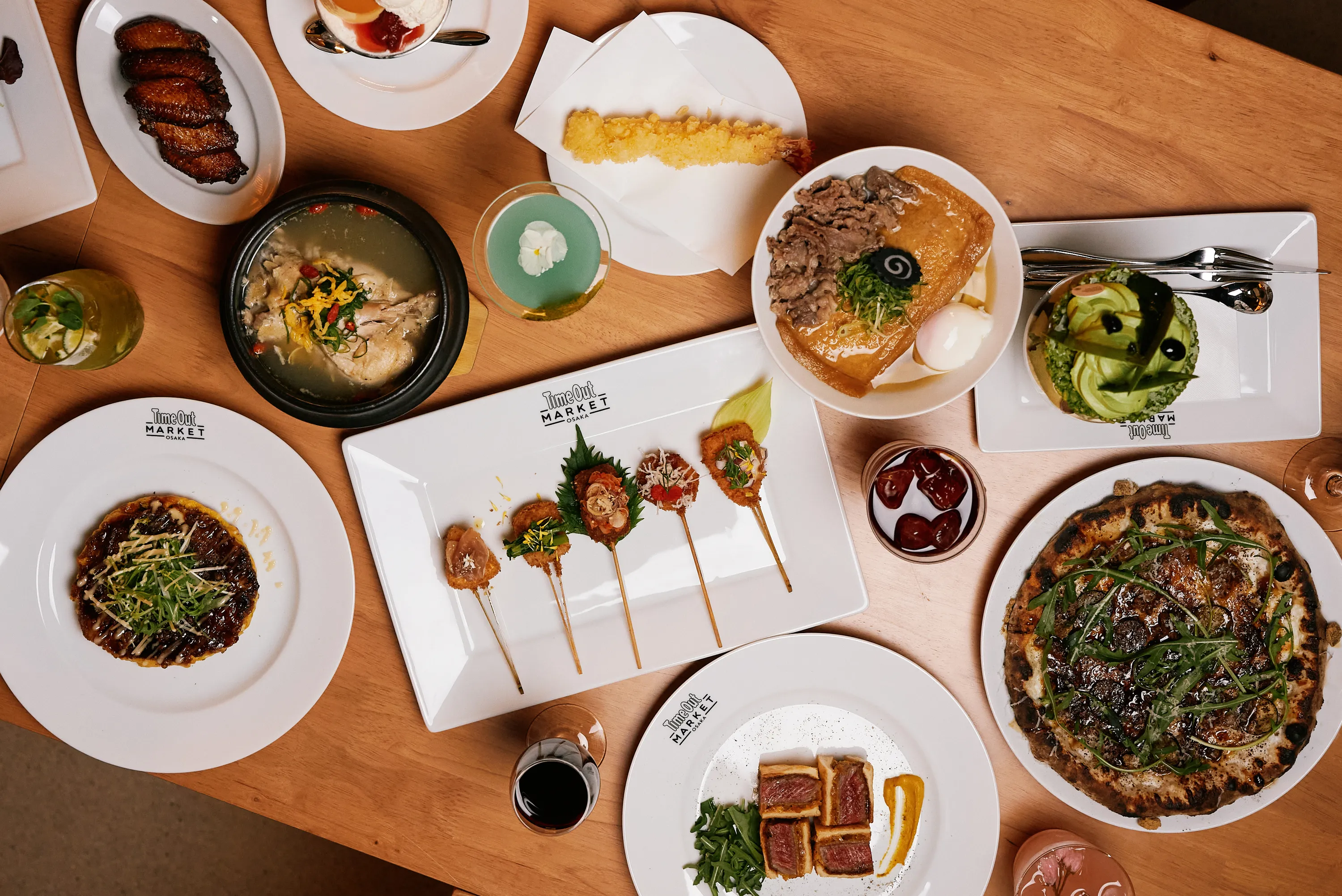No visit to Time Out Market is complete without a stop at the Time Out Bar, and in Osaka, visitors will find two bars serving an impressive selection of drinks. A well-curated lineup of draft beers and wines by the glass is available alongside regional sakes from Osaka, Hyogo, and Kyoto, offering a taste of Japan’s celebrated brewing traditions. Choose from a vast selection of Japanese whiskies or try an Osaka-themed signature drink like the Sakura Salty Dog or the Grand Green Mojito. A variety of non-alcoholic options also ensures there’s something for everyone to enjoy.