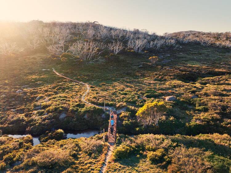 The ridiculously scenic 24-kilometre hike serves as the second leg of the four-day Snowies Alpine Walk. It takes you to the top of Mount Kosciuszko – Australia’s highest mountain, no less – with side treks to Blue Lake and Mount Townsend’s summit.