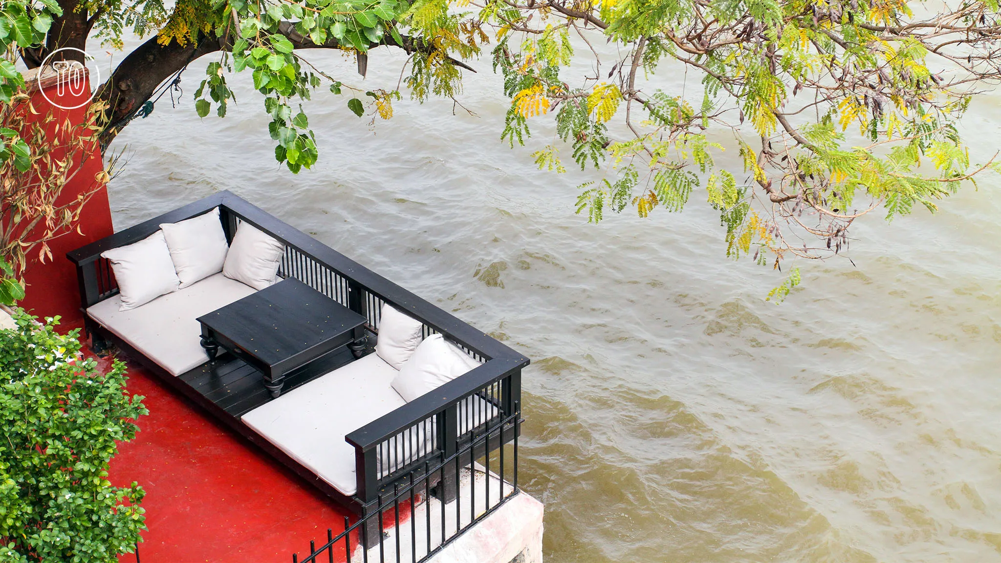 Tall, narrow doors lead to a lobby furnished with old-style dark wooden furniture set off by mirrors and gorgeous flower arrangements. Each of the ten guestrooms is unique on its own, featuring predominantly black and white accents, a four-poster bed, a bathtub and a private balcony for taking in views of the river. On top of it all is a guests-only rooftop “grandstand” where you can enjoy elevated views of the River of Kings. “We’d like each of our visitors to be in awe from the very first step inside,” says Lek. “We would like them to recognize the artistic details that differentiate us from chain hotels. And we are sure half of Bangkokians have never seen views of Chao Phraya from where we are.”