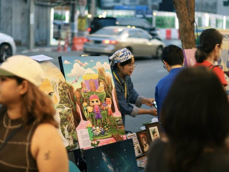 This weekend, you can stroll down one Bangkok street where artists paint right in front of you, jazz plays in the background and stop for a chat about their work..
