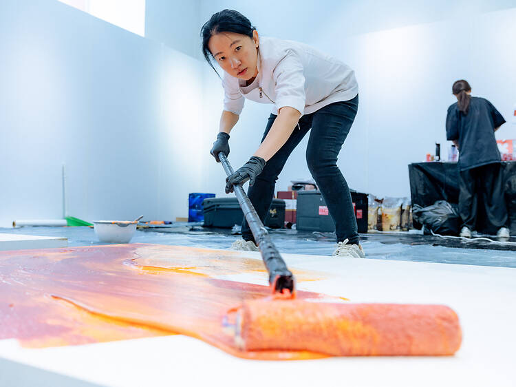 At the centre of the space, guests were also invited to step into the creative process themselves. A collaborative canvas allowed visitors to paint and contribute to the evolving installation, reinforcing the idea that this was not just something to look at, but something to be part of.