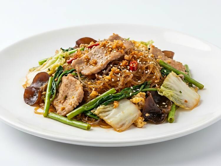 Consider this wok hei heaven, with each bowl exuding a strong, smokey finish. Diners can choose between a non-spicy classic sauce or a spicier option, both designed to push the same base of noodles, vegetables and protein in different directions. Ingredients are sourced locally where possible, with vegetables coming in fresh daily.