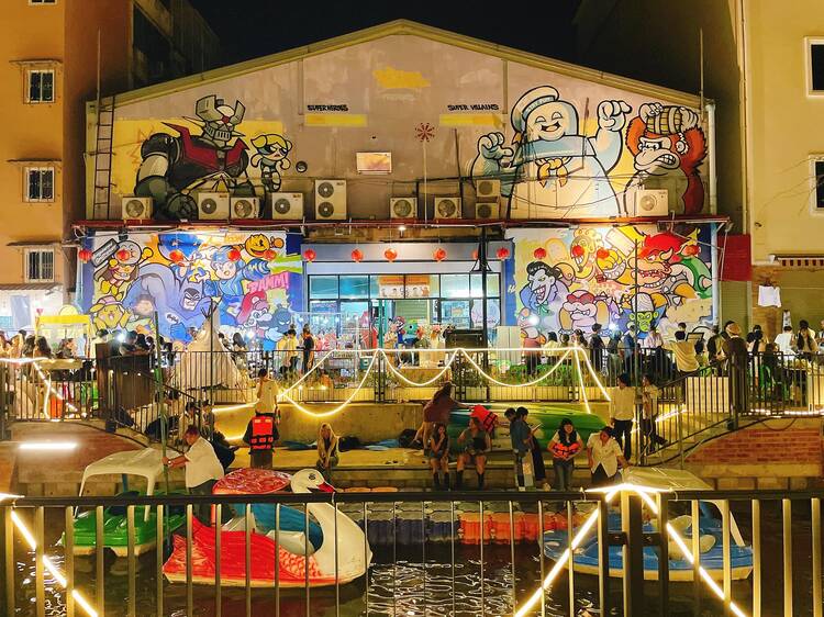 แน่นอนว่ากองทัพต้องเดินด้วยท้อง เดินเสพศิลป์จนอิ่มใจแล้วก็ต้องมาเติมพลังกันต่อ งานนี้เขายกทัพความอร่อยมาแบบจัดเต็มกับโซนสตรีทฟู้ดและร้านค้าชุมชนของดีเขตพระนครที่มีให้เลือกชิมเลือกช็อปมากกว่า 100 ร้าน เรียงรายตลอดสองฝั่งคลอง จะเดินถือของกินเล่นชิลๆ หรือจะนั่งทานจริงจังซึมซับบรรยากาศยามค่ำคืนก็ตอบโจทย์ ใครที่กำลังมองหาที่แฮงก์เอาต์ใหม่ๆ หรืออยากหาคอนเทนต์ลงโซเชียลส่งท้ายปี ต้องมาสัมผัสให้ได้สักครั้ง