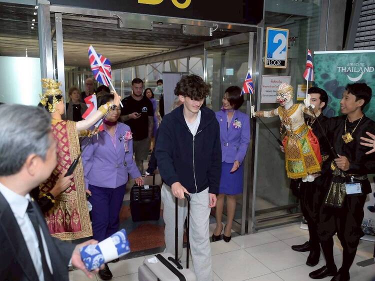 เช้าวันที่ 17 ธันวาคมที่ผ่านมา บรรยากาศที่สุวรรณภูมิคึกคักเป็นพิเศษ เมื่อ ททท. นำโดย นางสาวฐาปนีย์ เกียรติไพบูลย์ ผู้ว่าการ ททท. พร้อมพันธมิตรจากทั้งภาครัฐและเอกชน ร่วมต้อนรับเที่ยวบิน TG911 ของการบินไทย ที่บินตรงจากลอนดอนถึงกรุงเทพฯ เวลา 06.15 น. พร้อมมอบของขวัญฉลองให้นักท่องเที่ยวชาวอังกฤษคนที่ 1 ล้าน และเฉลิมฉลองหมุดหมายใหม่ของตลาดนักท่องเที่ยวระยะไกลไปพร้อมกัน