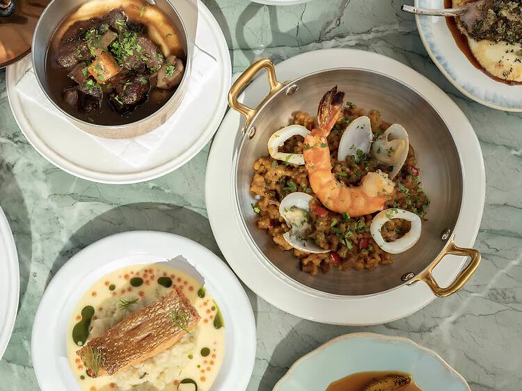 บนชั้น 23 ของ โรงแรม Andaz One Bangkok ร้าน Piscari เปิดประตูต้อนรับการบริการช่วงกลางวันเป็นครั้งแรกกับ ‘Piscari Sunlit Brunch’ ซึ่งจัดขึ้นเพียงวันเดียวเท่านั้นในวันอาทิตย์อีสเตอร์นี้ รูปแบบอาหารเน้นความคุ้มค่าและผ่อนคลาย เริ่มต้นด้วยหอยนางรม ชีส เนื้อโคลด์คัท และอาหารเรียกน้ำย่อยแบบเติมได้ไม่อั้น ก่อนจะเข้าสู่เมนูหลักแบบ A la carte ที่ยังคงกลิ่นอายเมดิเตอร์เรเนียนไว้อย่างเหนียวแน่น จานเด่นมีตั้งแต่ คุสคุสไก่และไส้กรอกเมอร์เกซ, แก้มวัวตุ๋นไวน์แดง ไปจนถึงปาเอยาอาหารทะเล และปิดท้ายด้วยของหวานอย่าง บาคลาวาพิสตาชิโอ และเชอร์รีคลาฟูติ นอกจากนี้ยังมีแพ็กเกจเครื่องดื่มเสริมสำหรับผู้ที่ต้องการดื่มด่ำกับช่วงบ่ายที่ยาวนานและรู้สึกอยากเอนกายได้มากกว่าเดิม