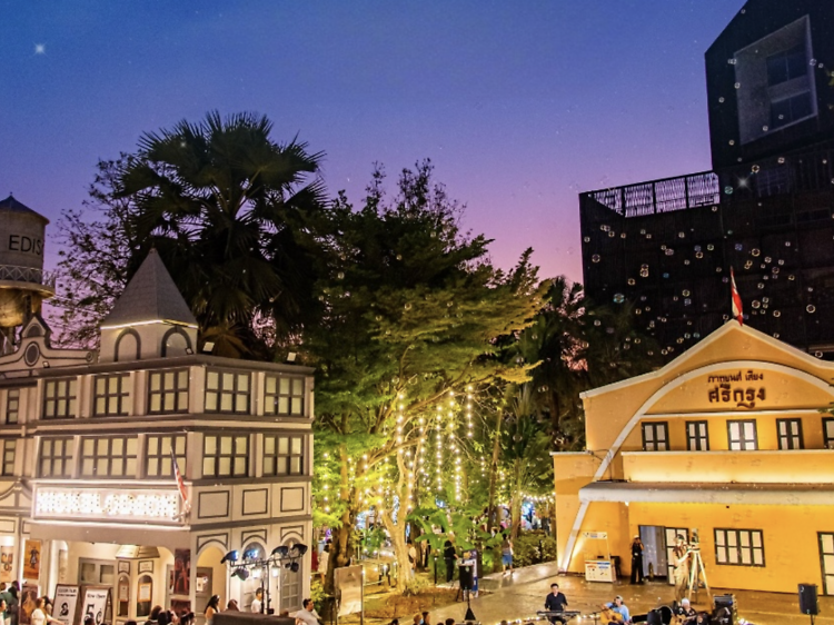 Maya City looks different once the sun gives up. The Film Archive’s replica streets, borrowed from Thai and world cinema, take on a softer glow after dark, opening for a rare evening that feels quietly transportive. Wander past familiar façades while craft stalls stay open late, live music drifts through courtyards and small activities invite lingering rather than rushing. The soundtrack changes each night. Thee Chaiyadej brings warmth on February 13, followed by the gentle, almost whispered songs of Pijika Jittaputta two days later. Valentine’s Day belongs to student bands from the Salaya community, offering earnest love songs that feel more sincere than polished. It’s a once-a-year chance to see this cinematic city breathe at night, romantic without trying too hard and best enjoyed slowly, preferably with nowhere else to be.