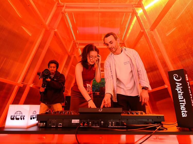 Open Airwaves turns the idea of a recording studio inside out. Set in a public garden, it offers a fully equipped booth for anyone curious about sound, whether you make music for a living or have only ever hummed ideas to yourself. DJ decks, microphones and production tools sit ready, no investment required, no expertise assumed. You turn up, try things out and see what happens. What makes it stick is the intention behind it. This collaboration between One Bangkok and Bangkok Community Radio treats songwriting as a way of noticing the city. Small emotions, half-formed stories and casual experiments are recorded and kept, forming a living audio archive of urban life. Some pieces will surface online, others simply exist. A place to test ideas, listen differently and leave a trace, however rough, of how Bangkok sounds right now.