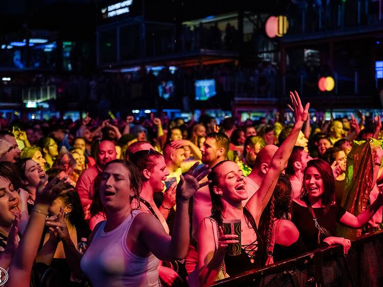 The city’s prime outdoor live-music venue stages shows two or three times a week from late April to late September. A crowd of several thousand can gather in front of the main stage, rows of lounges and skyboxes looking down on proceedings from above, ideal for those too old or too posh to mosh and happy to pay extra. Guests there gain access to private bars and toilets while the hoi polloi have to make do with busy outlets and amenities.
