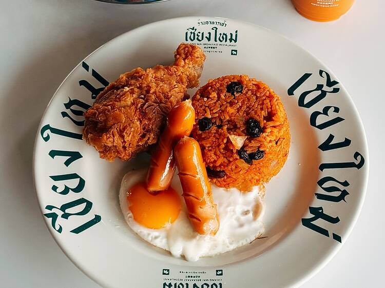 What is it? A tourist and local favourite that does its own spin on traditional Thai breakfast with more range than most. Congee is the anchor – topped with anything from minced pork to seafood – but the menu sprawls comfortably into westernised territory with American fried rice, grilled sausages and fried chicken. For the uninitiated, American fried rice has nothing to do with America – it's fried rice stir-fried in ketchup, which sounds alarming but tastes better than you’d expect. The perfect balance of savoury and sweet. Chinese-inspired dishes round out the menu, a nod to Chiang Mai's deeply rooted Chinese community and the Yunnan influence that runs through the city's food culture.