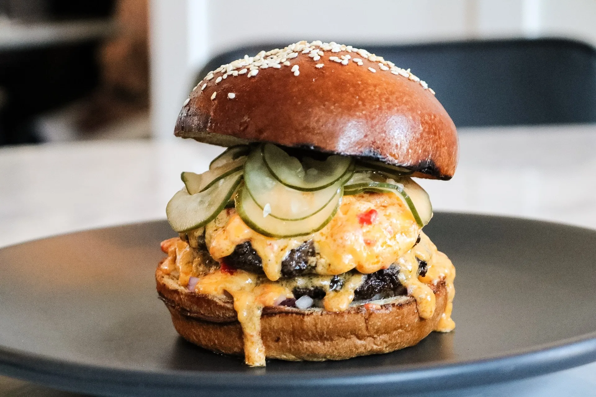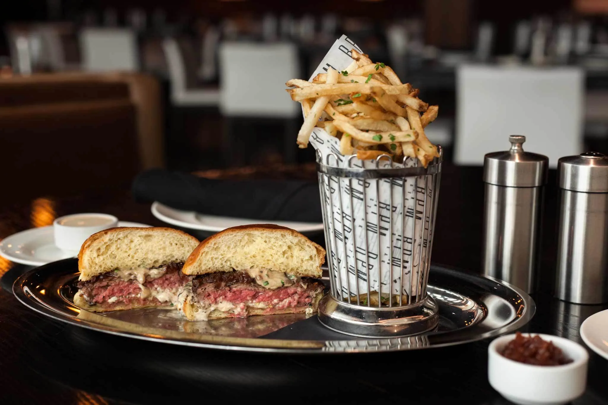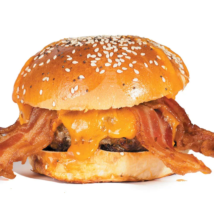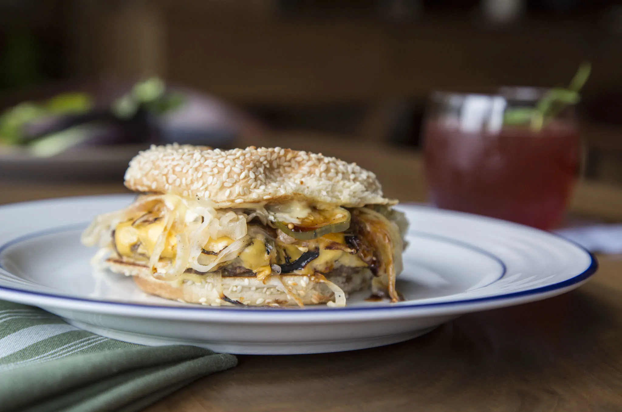 13. BDK Burger at Blue Door Kitchen & Garden: Piled high on a toasted brioche bun, this double patty burger is topped with cheddar, LTO and pickles.