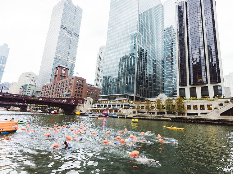 The early-morning event runs from 6:30am to 10am along the river’s main stem, with swimmers launching near the Dearborn Street Bridge and finishing at the Clark Street Bridge. Spectators can line the Chicago Riverwalk to cheer them on as participants tackle 1- and 2-mile courses through the city’s canyon of skyscrapers.
