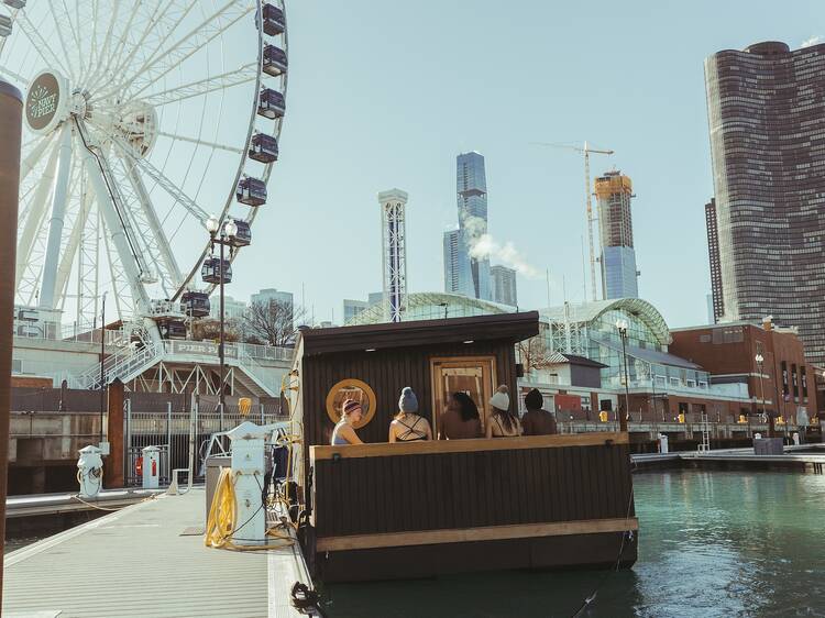 At the tail end of 2025, Navy Pier debuted a unique winter haven: Kiln, a custom-built floating sauna bobbing in the shadow of the iconic Centennial Wheel. Founded by Chicago entrepreneur Zoe Lake, the Scandinavia-inspired vessel offers guided thermic cycles—alternating heat, cold and rest—against an unbeatable skyline backdrop. For the truly daring, the experience includes the ultimate “cool down”: a plunge directly into the frigid winter waters of Lake Michigan.