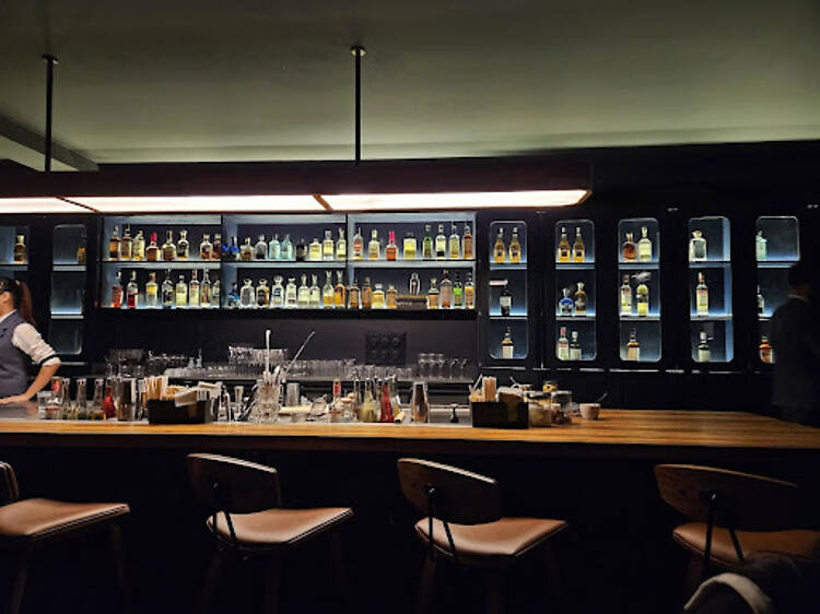 The bar – no social media page or Google Map location, by the way – is located behind the popular sandwich shop Shokupan in Priya Market, behind a pair of Japanese-style flap curtains. The light is dim, the wooden tables feel unmanicured but tasteful, and the speaking is, indeed, in murmured tones.
