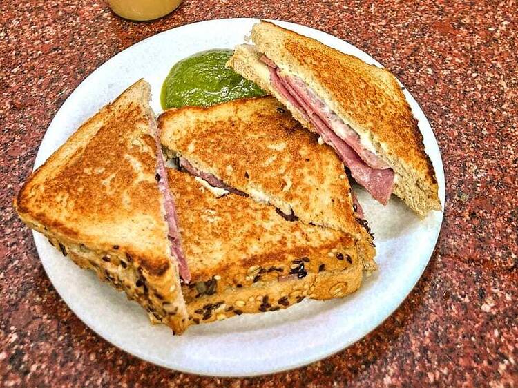 Novelty remains a novelty (forgive that ghastly turn of phrase) because of its simplicity. No ciabatta or prosciutto here – you get one filling per sandwich, but you won’t miss the extravagance of overloaded sandos here. Fillings range from tuna to pork ham to chicken salami to veggies to the humble grilled cheese, and you get to decide what bread you want with it (white, brown or multigrain), and if you want it toasted or not. You get ketchup on the side, with a generous serving of homemade coriander and mint chutney, ladled directly from a small metal bucket onto your plate. Each sandwich’s heavily doused with mayonnaise, and you’re supposed to wash down the whole affair with a bottle of their cold coffee, made – you guessed it – in-house too. The whole meal will cost you less than ₹300.