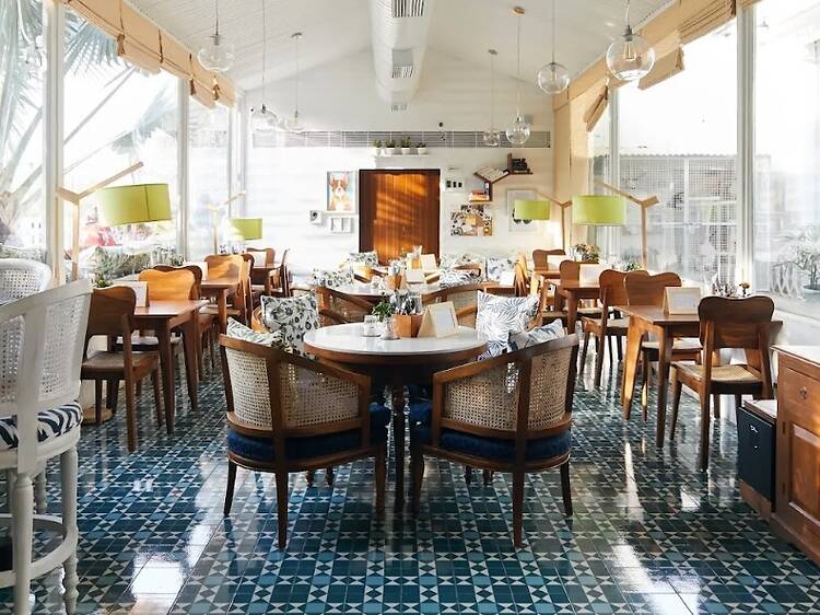 The interiors feel vaguely Moorish. The biggest draw’s the sun, which streams in from every corner, and their little patio, which looks out onto the forested ridge. Folks come here for dates, for whiling away their work-from-home days, or in large groups typically interested in downing as many G&Ts as they can.