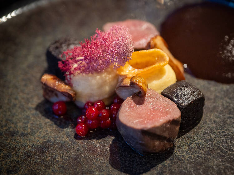 The dishes follow one another with confidence and impress throughout. There’s Arctic char from Lake Inari, porcini and trout. Yet there’s a constant presence of international influences too: yuzu, lemon gel and bay leaf oil. Of course, there are also Nordic touches like spruce shoots, lingonberries and blueberries.