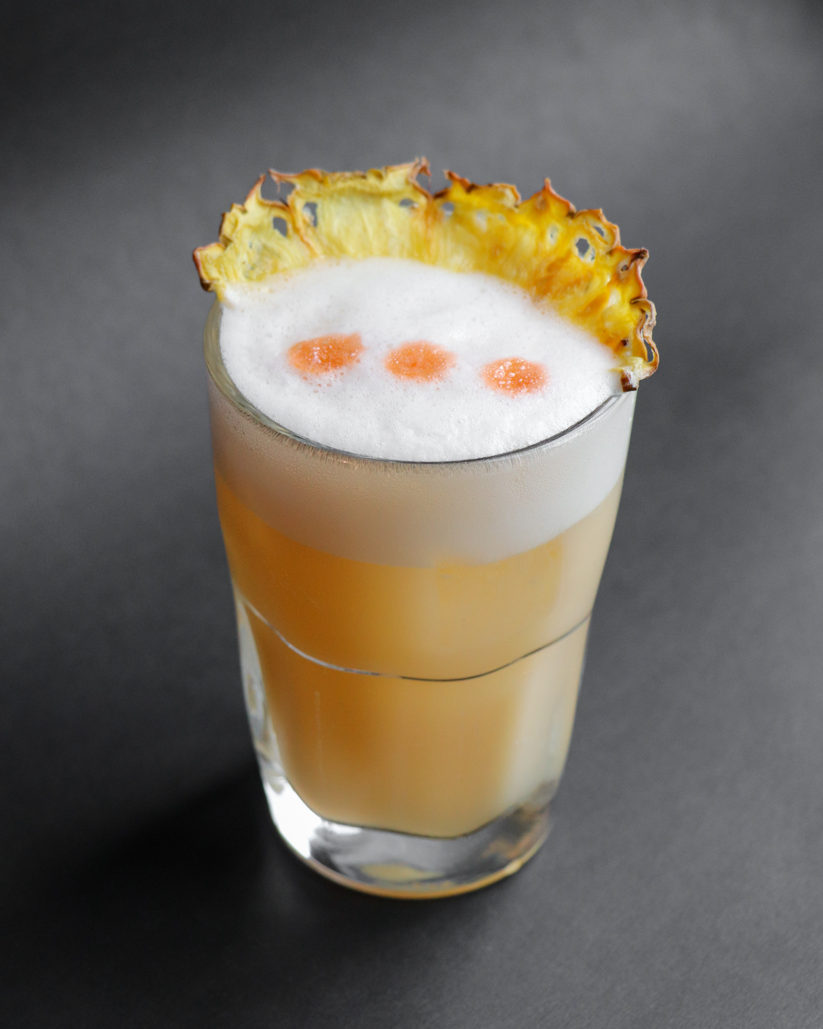 Quoi : Absinthe Balsac – Cordial de citron vert – Ananas – Soda au fruit de la passion – Blanc d'œuf – Bitter d'Angostura