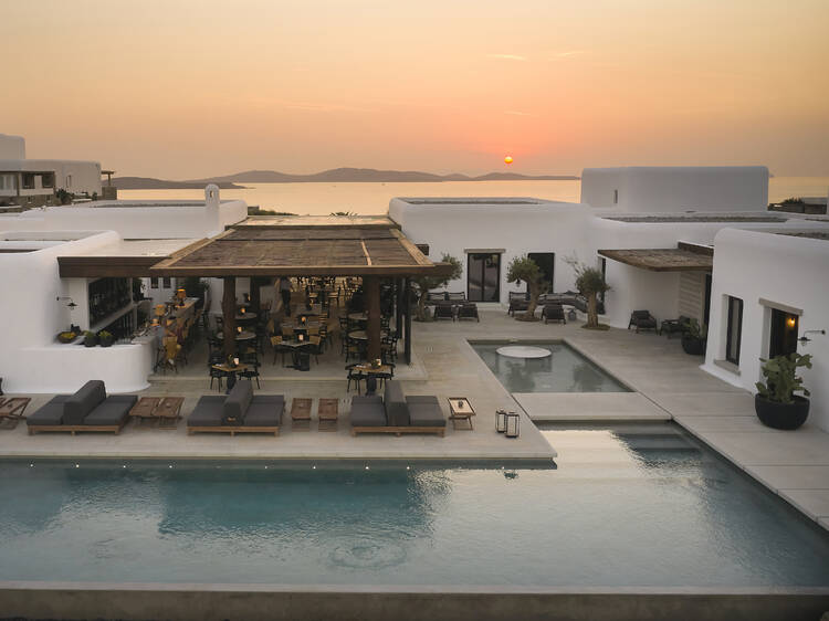 Closest transport: Mykonos airport is five kilometres away – the hotel can arrange your transfer. KTEL buses that run between Chora and many of the best-known beaches.