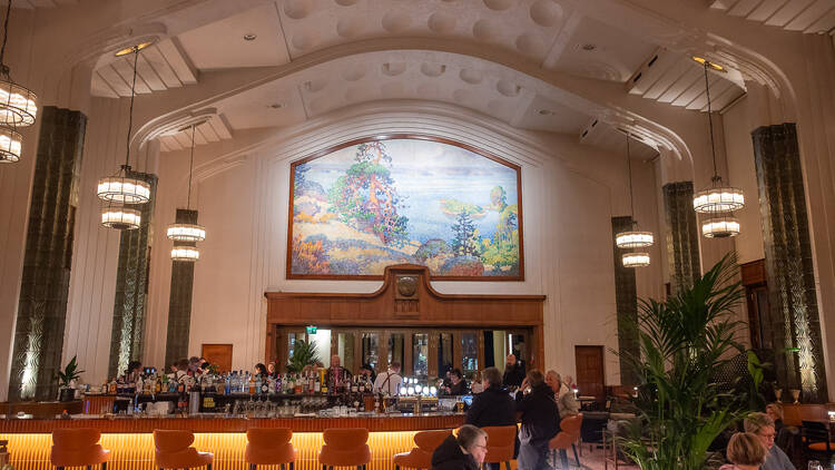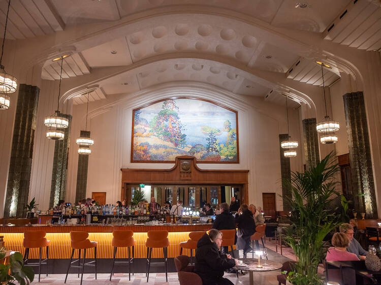 The Taulu restaurant at Helsinki Central Station impresses with its stunning Art Nouveau setting and a painting depicting Finland’s national landscape.