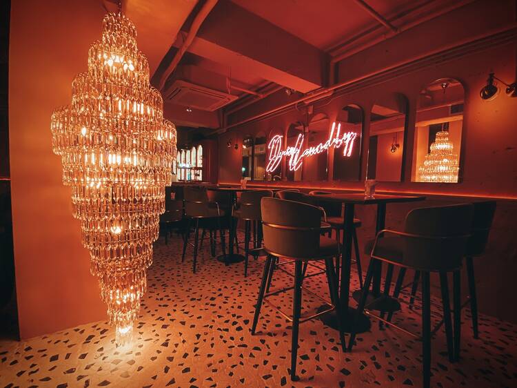 Step into Dirty Laundry, a hidden cocktail bar tucked behind a fake laundromat along Lockhart Road. This pink neon-lit bar is cosy and rustic, with cocktails that draw inspiration from local culture. Put down an order for signature drinks like ‘Wan Chai Dreams’, ‘Dizzy Cloud’, or ‘Floral Perfume’, a refreshing blend of rose water and cucumber-infused gin.
