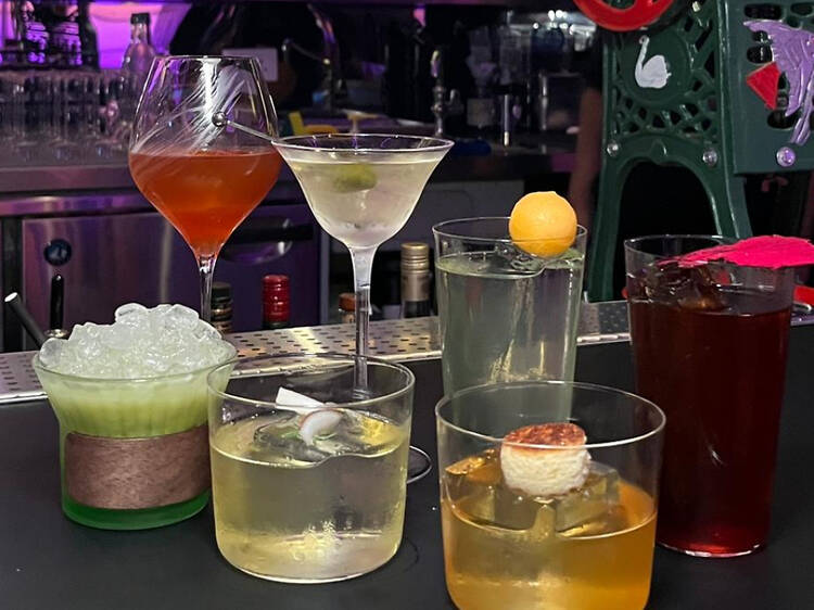 Gone are QGC’s grimy charms – the basement space is now unrecognisable with pink, yellow, and purple mood lightning and comfortable booth seating. Peru-born bartender Raiza Carrera has created a Japanese-inflected menu of cocktails that is very palatable, even for light drinkers. The cheeky F.YU combines gin, soju, shiso, and cantaloupe melon, while Kiss of a Geisha pairs bourbon fat-washed with shiitake mushrooms with coffee liqueur. Our favourite is probably Above the Clouds, a creamy smooth concoction of sake, pistachio aperitivo, matcha liquor, and soy milk with shaved ice.