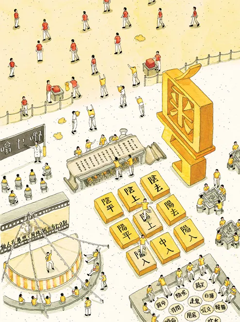 Ng Kap-chuen is a local illustrator who shot into the public consciousness last year with his intricate cartoon Great Canton and Hong Kong Proverbs, which depicts 81 proverbs used only in Cantonese. One of the famous proverbs he drew is ‘ghost (gwai2) hitting (paak3) the back of your neck (hau6-mei5-jam3)’ (鬼拍後尾枕), which is equivalent to ‘spilling the beans’ or ‘letting the cat out of the bag’. The illustrations became widely popular and went viral on social media. “We have to make people proud of speaking Cantonese again,” Ng tells us of his inspiration.