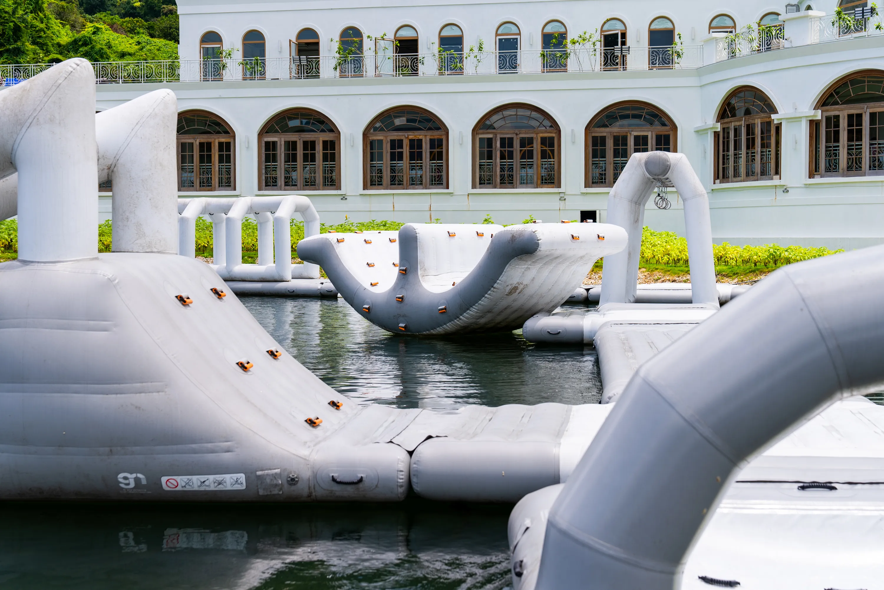 Cool off from the heat this summer and make a splash at Flow Academy's inflatable water sports arena Aqua Park. Open from now until September 30, the park features everything from slides and obstacle courses to paddles boats, a kids lake pool, and even a pet swimming zone.