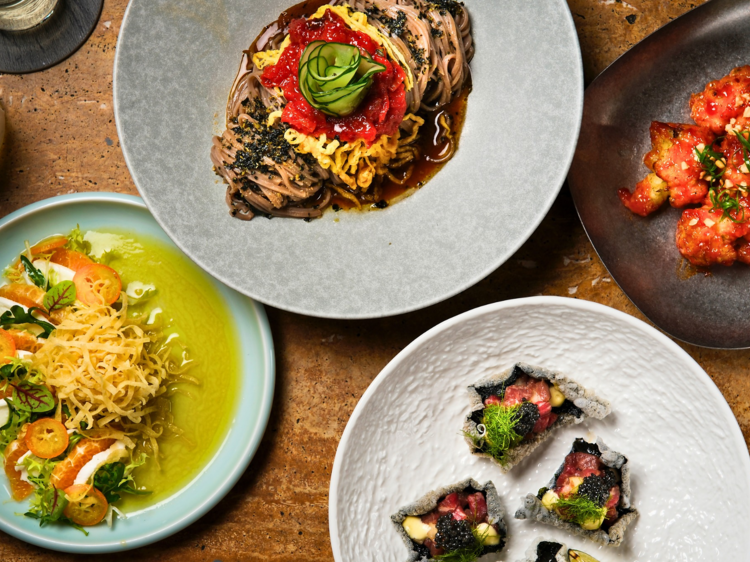 Championing the communal spirit of Korean dining, O’rm serves a distinctive sharing menu. A standout dish is chef Choi’s take on the traditional yuk hoe raw beef, elevated with Wagyu beef and caviar in crispy seaweed cups. Paying homage to Jeju’s unique cuisine, the refreshing kumquat salad features the island’s iconic produce, while the mini crab kimbap transforms the Korean comfort dish with bites of premium Alaskan crab. Other highlights include familiar staples like jjajang tteokbokki, bibim buckwheat noodles, and LA cut chargrilled short ribs served tableside, KBBQ-style.