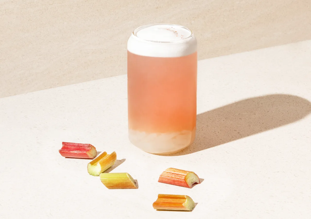 The first new drink, Kiss in Pink (petite $38; regular $44), is a natural pink lemonade-based drink made with fresh rhubarb, lemon, monkfruit sugar, ginger, alkaline water and nata de coco, topped with vanilla rice froth and a pinch of Himalayan pink salt to bring out the flavours of the fruit and add balance.