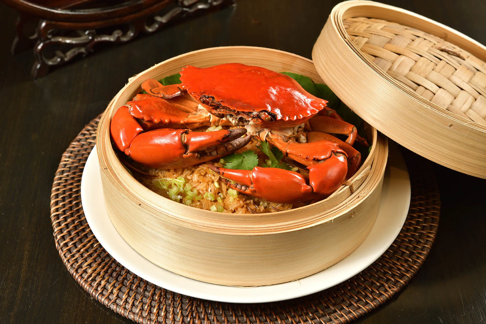 The selection of mains contains various exciting dishes like wok-fried prawns with salted egg yolk and pomelo sauce, sautéed avocado with pumpkin and lily bulbs, and the headliner steamed glutinous rice with mud crab – which, as the name suggests, consists of a juicy, meaty crab atop of glutinous rice that soaks up the essence of the crustacean.