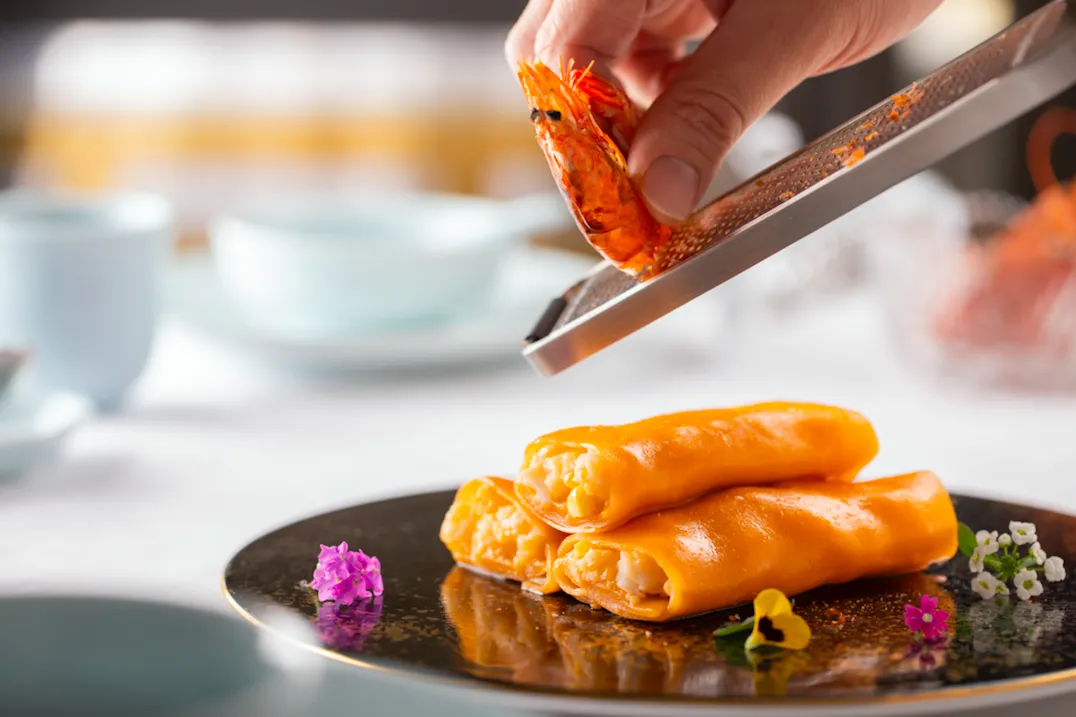 Show appreciation and gratitude of the journey food takes to get to your plate. The handmade steamed rice flour roll by executive chef Menex Cheung of China Tang is one example of the delicate steps that goes into the craft – from using lobster soup instead of water to make the rice batter, to the overnight treatment of the dried prawns.