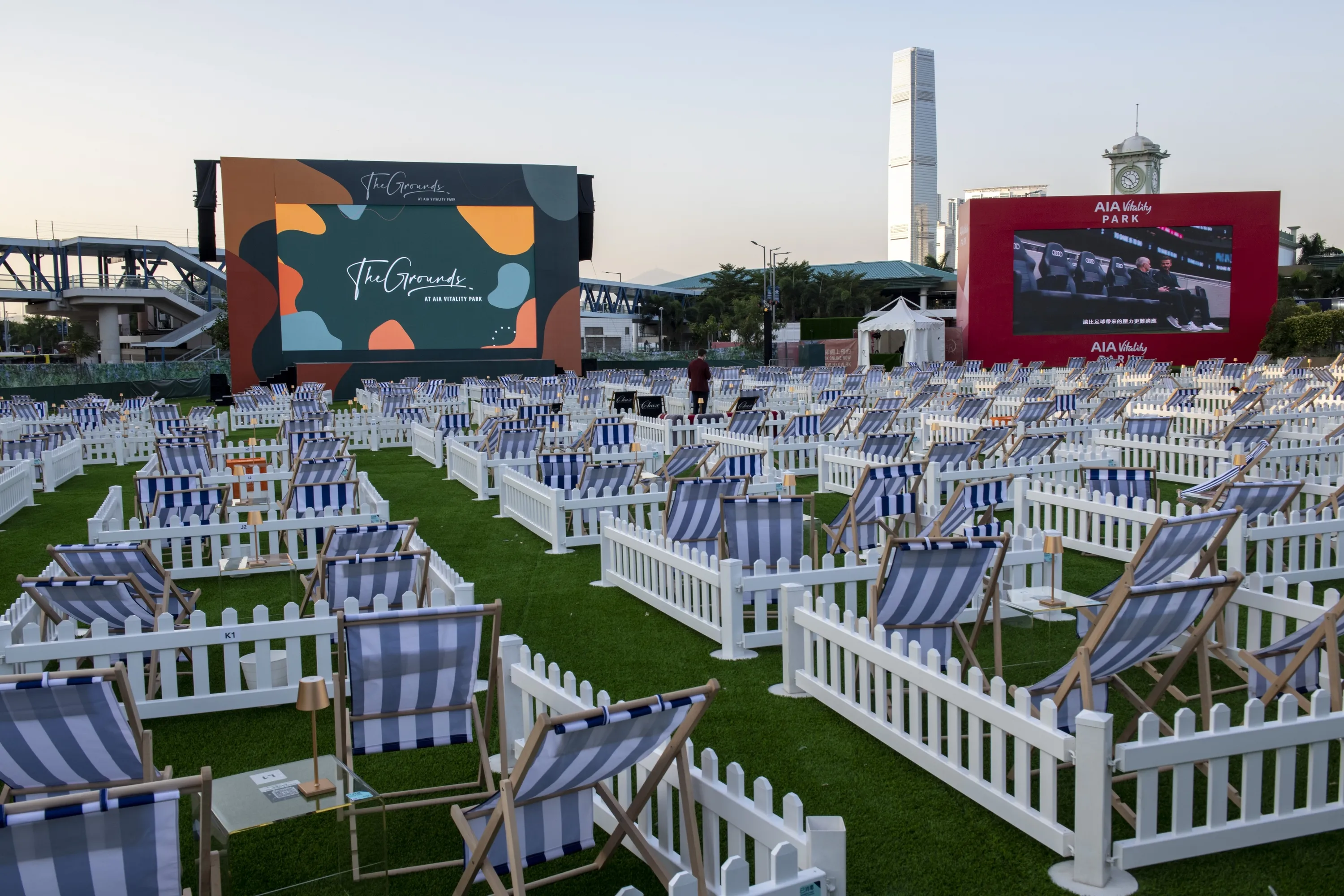Hongkongers can enjoy some of the city's best events, happenings, and local entertainment in a safe and responsible setting. The Grounds has one hundred socially distanced private pods – each can be arranged to seat up to four persons. The space features a giant LED screen along with state-of-the-art sound system, and offers a range of activities and interactive programming, including live music performances, wellness activities, stand-up comedy, film screenings, and family-friendly games.