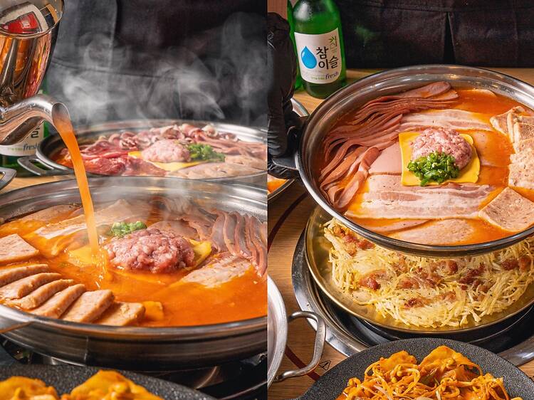 This Korean joint along Hollywood Road specialises in bubbling pots of budae jjigae, or Korean army base stew. In case you haven’t heard of budae jjigae, this comforting spicy stew typically comes loaded with luncheon meat, sausages, rice cakes, baked beans, and ramen noodles, all coming together into one hearty dish that pairs well with soju. Aside from serving the beloved dish, Budaeok also whips up grilled pork or beef galbi short ribs, tteokbokki, and Korean-style fried chicken, all of which will hit the spot and line your stomach before a big night out on the town.
