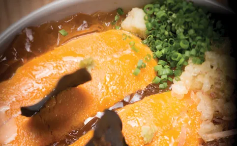 Japanese tapas fills the menu at this izakaya that opened a year ago – and the one tapa to rule them all is the uni-spiked tofu. This beautiful dish is presented in a flat bowl with uni, dashi – Japanese soup stock – jelly, bonito flakes and ginger stacked artistically atop a bed of homemade tofu. Why does it work so well? The dashi jelly acts as a conduit for the other flavours and, with the ingredients playing off each other, you get a different texture with every spoonful. $158. 20 Po Hing Fong, Sheung Wan, 2547 2833; tabibito.com.hk.