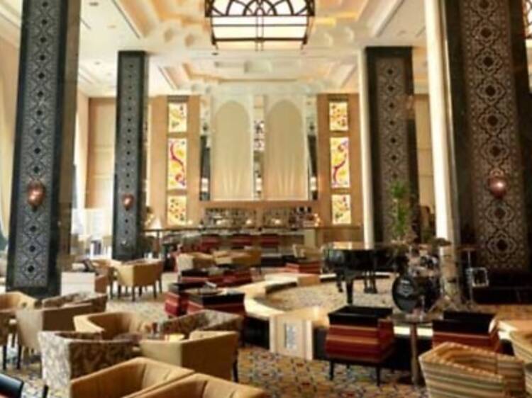 The high ceiling, ornate wall-motifs, lush carpeting and yellow lighting all support the luxurious and lavish image that Songket Lounge is trying to embody. In keeping with that image is an opulent chandelier that makes reference to the patterns of the songket and an in-house band that plays an ambient haze of music, rather than being in the forefront. Songket Lounge serves cocktails, mocktails and aperitifs.